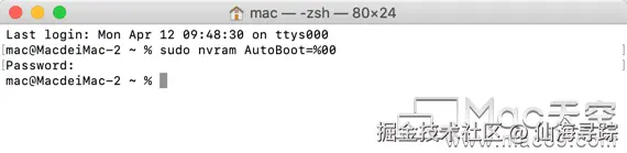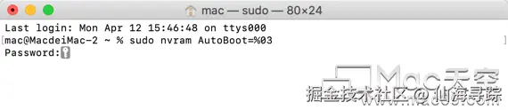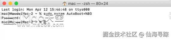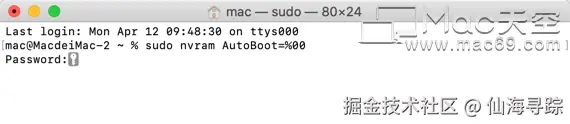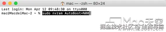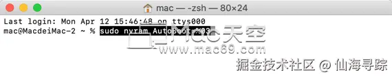 如果要恢复自动开机功能,命令改为 sudo nvram AutoBoot=%03 即可。