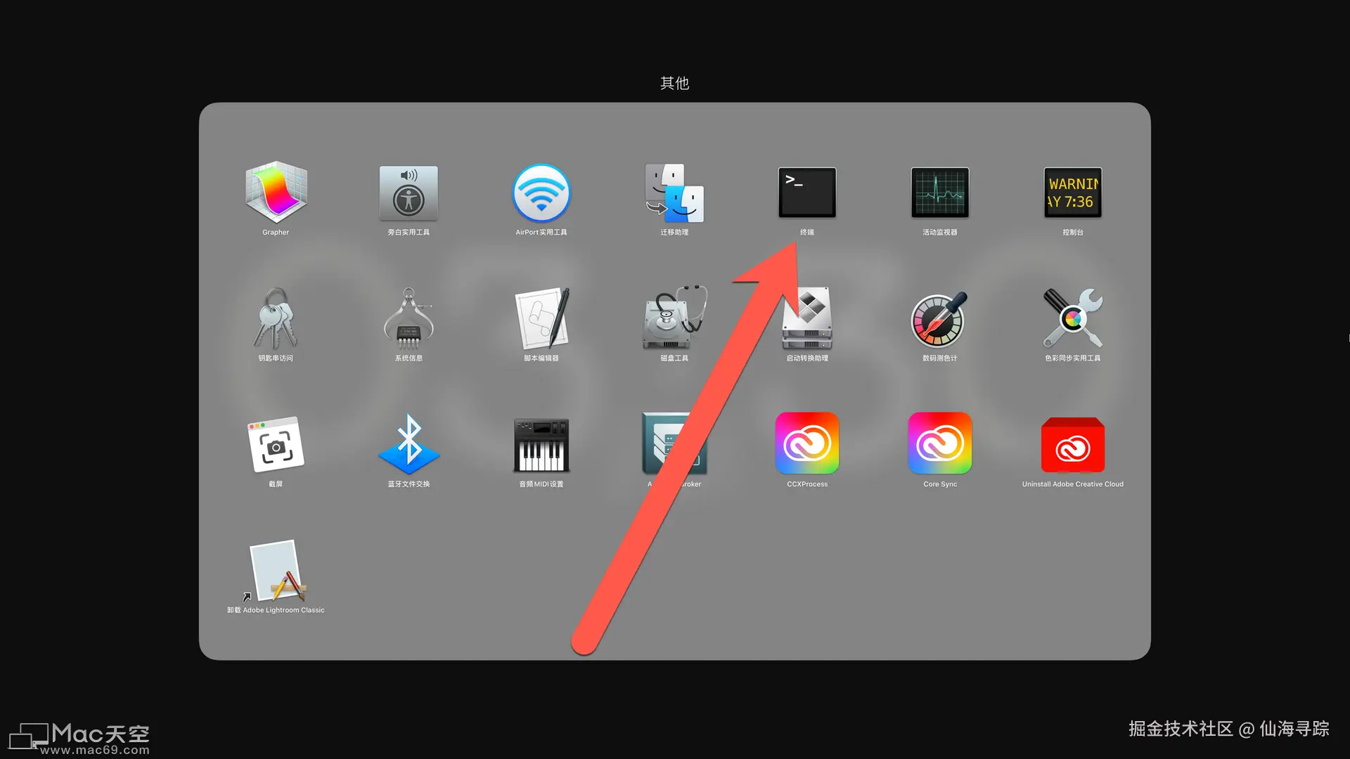 打开终端:应用程序 > 实用工具 >终端。