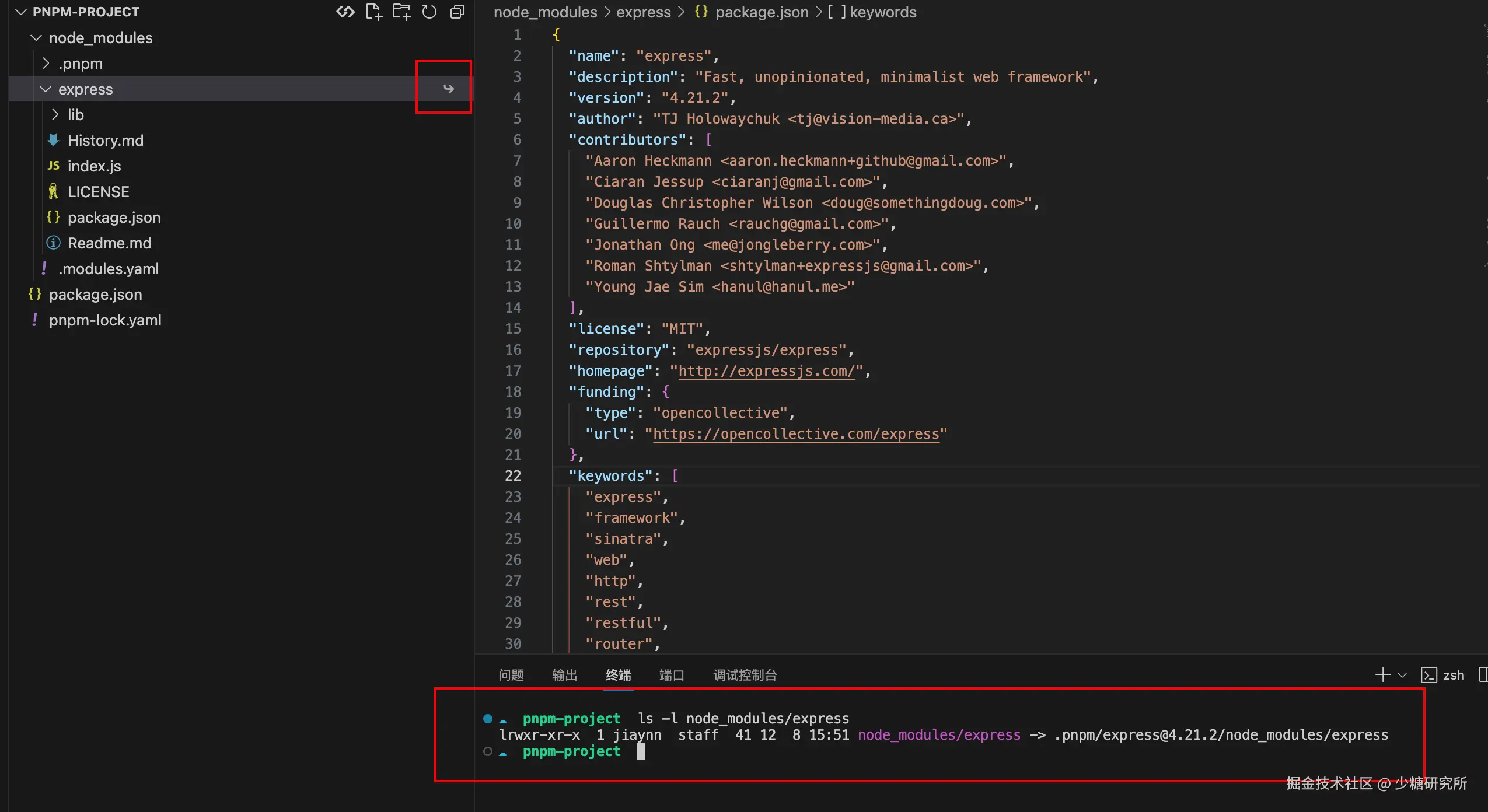 一些证明项目依赖包的源文件就是 store 目录下的 hard link :juejin.cn/post/716608…