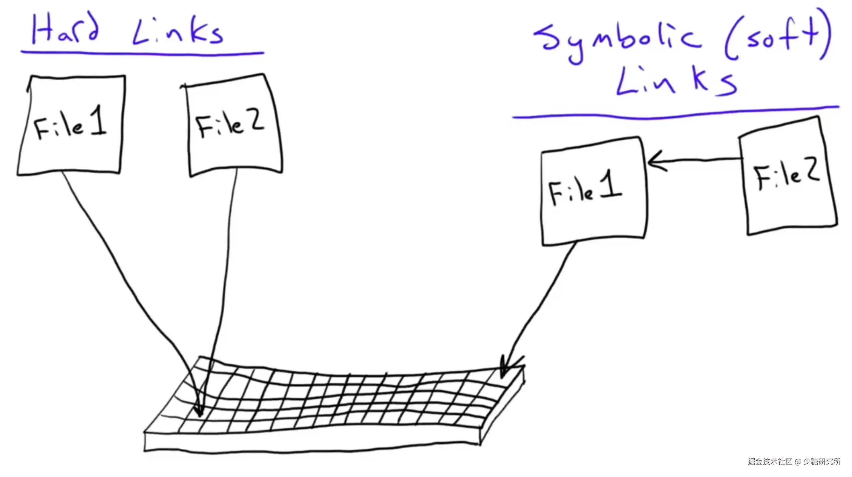 | 符号链接是否可识别 | 可以通过文件类型(符号链接)识别 | 无法识别硬链接和原文件的区别,文件无区别 |