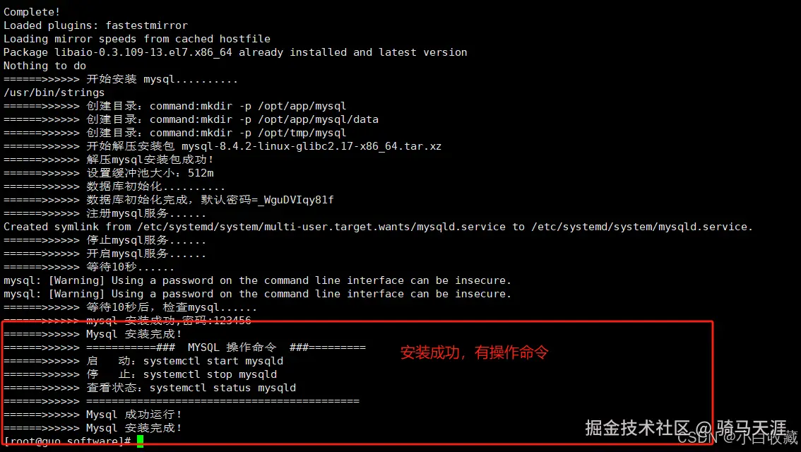 执行脚本命令,开始部署MYSQL,执行命令后,等待执行部署完成。