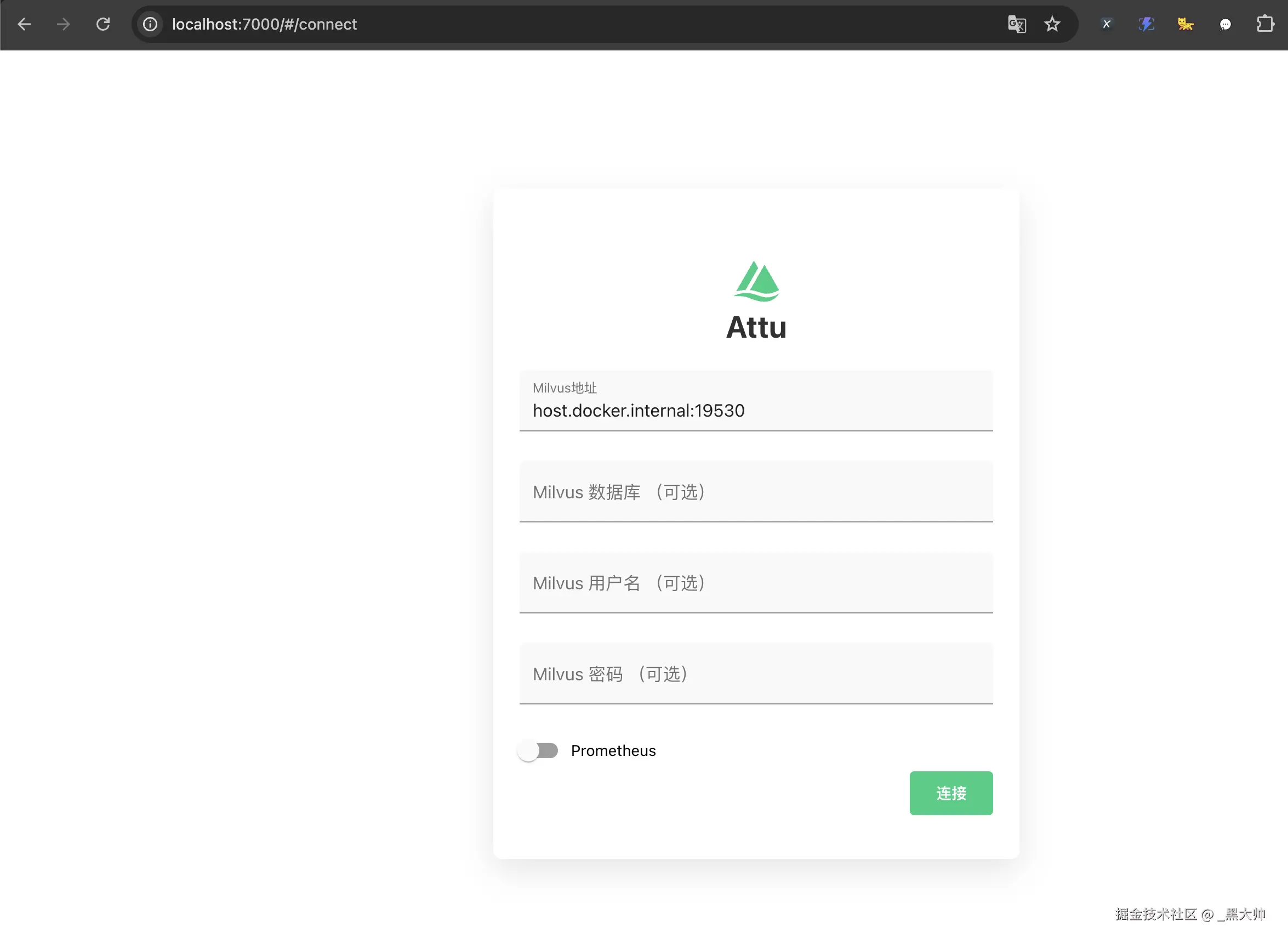 milvus不同于MySQL、Redis等可通过像Navicat等客户端连接进行可视化的操作。这里我们使用Attu对milvus进行可视化管理。具体介绍和安装可以看官网说明。