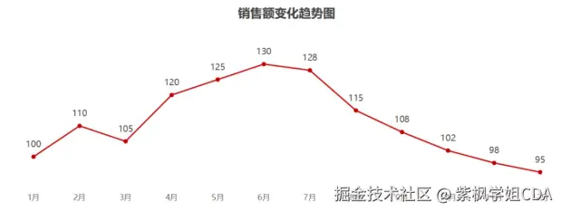销售额在 7 月达到高点,然后开始下滑。8月之后数据一直在下滑直到12月。小张确定,这不是短期波动,而是一个持续的下降趋势。