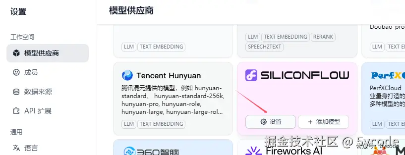 找到模型供应商,点击设置,配置下密钥就可以了。
