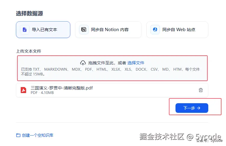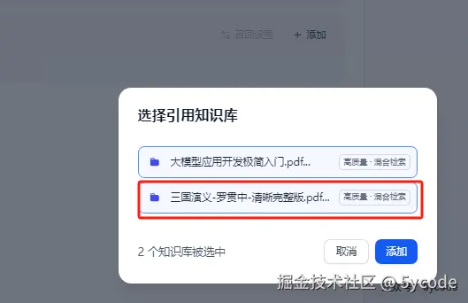 知识库可以一次选多个,我们只选择三国演义。