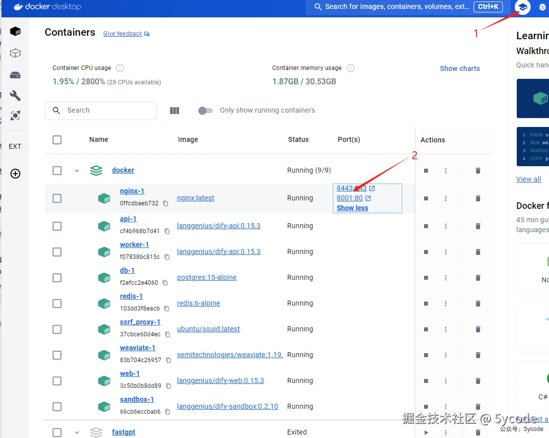 启动以后在docker Desktop中查看,