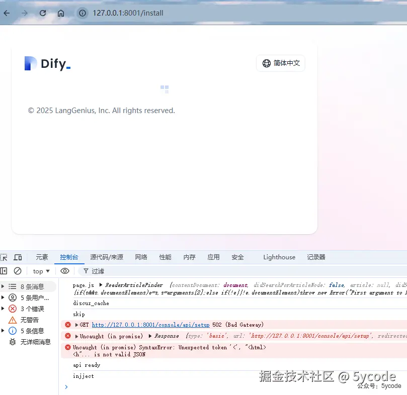 修改dify绑定ip API 服务绑定地址,默认:0.0.0.0,即所有地址均可访问。 刚开始我以为是控制dify对外暴露的服务的,改成了127.0.0.1,然后出现以下的502,折腾了我快3个小时。