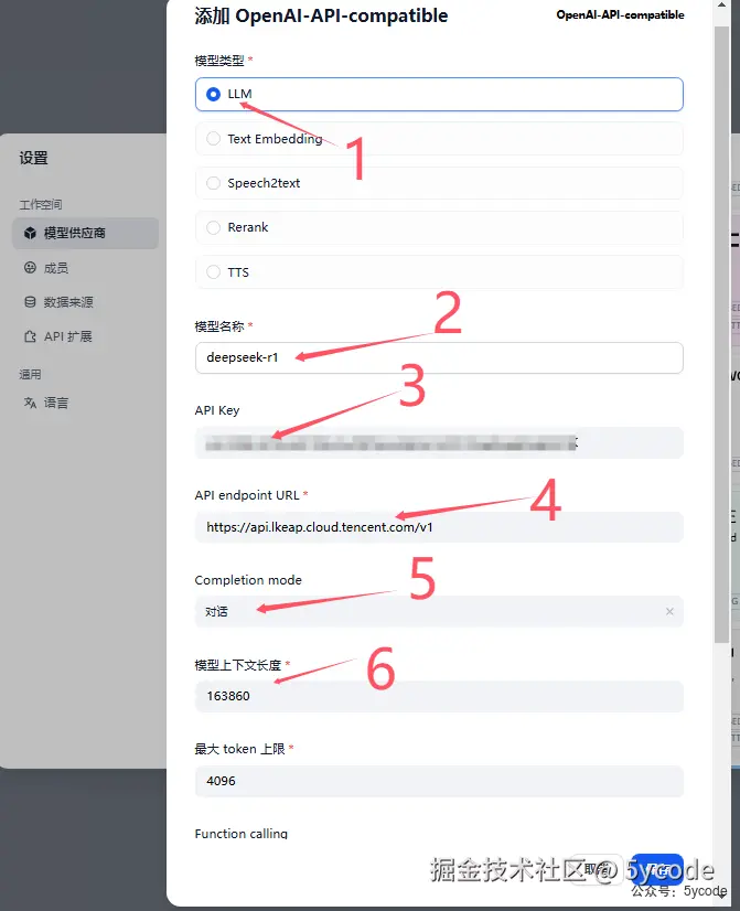 按步骤填写即可。 2,模型名称选择deepseek-r1 3,api key 填写自己的即可 4,填写地址:api.lkeap.cloud.tencent.com/v1