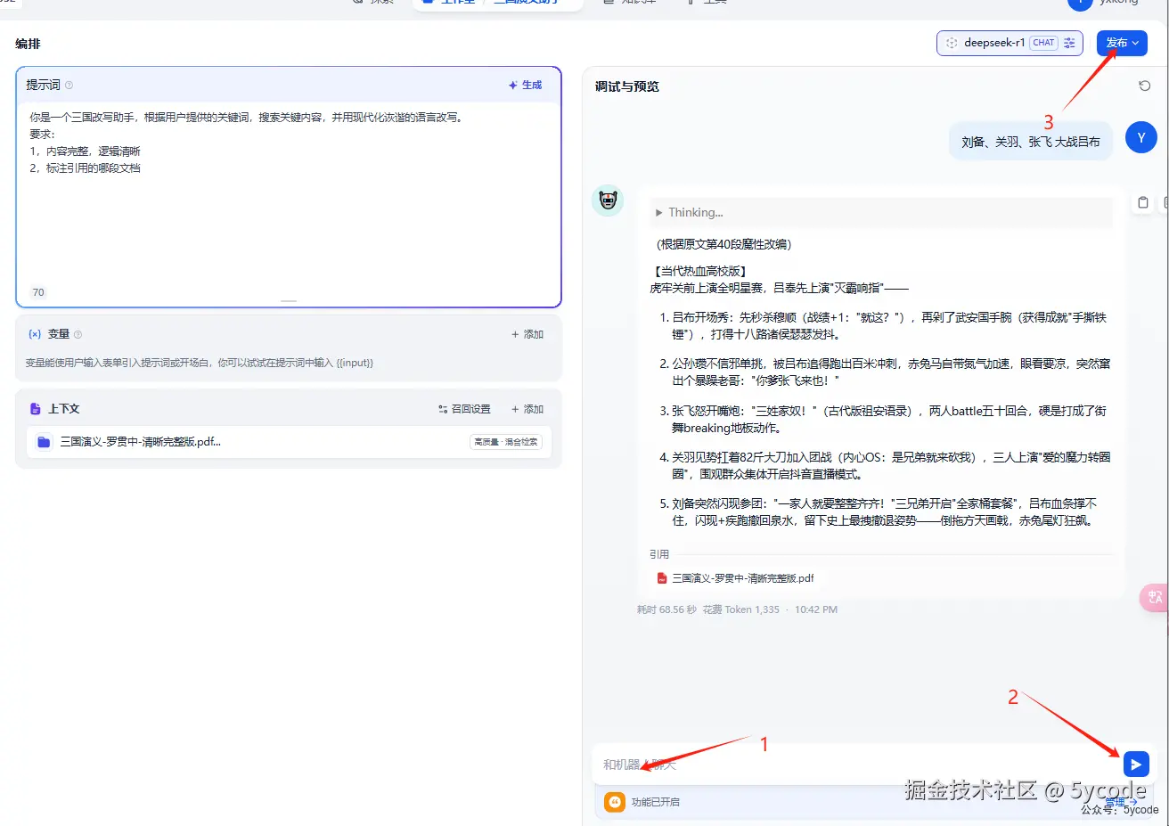 1,输入聊天内容 2,点击发送 3,调试成功以后可以点击发布
