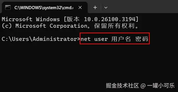 用户名 密码】的命令,最后按下回车键执行命令就可以给Windows设置开机密码。