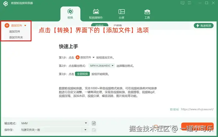 M4v格式怎么转化为MP4格式?数据 蛙视频转换器可以转换1000多种不同的音视频格式,使用该应用将MP4转m4v格式,可以在转换时开启高速转换功能,这样可以在一定程度上输出无损的视频文件。此外,如果用户需要转换的MP4视频较多,也可以批量添加MP4文件进行格式转换,提高转换效率。下面是MP4转m4v格式的具体转换步骤介绍。