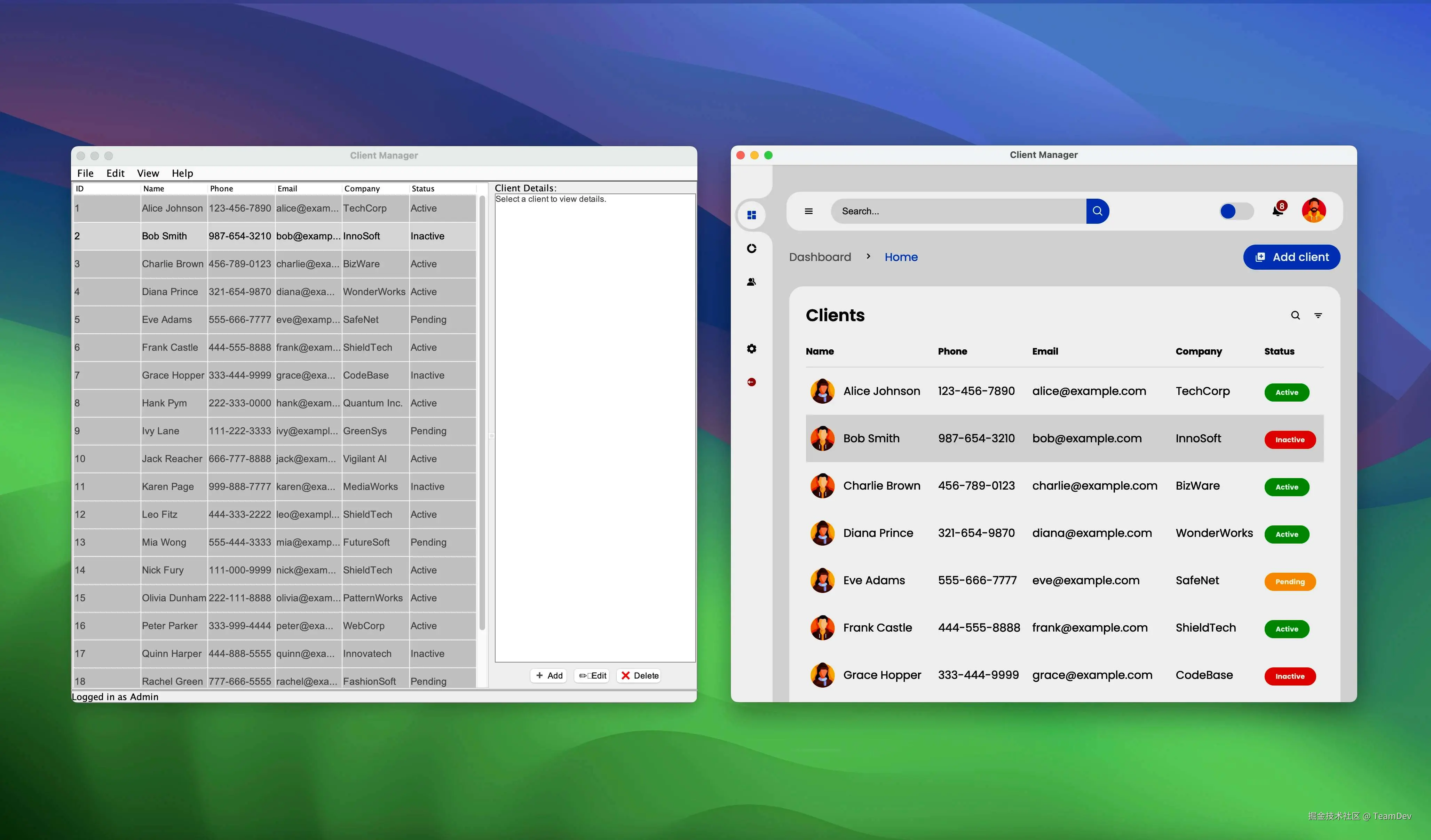常规 Swing 应用程序 vs. 高对比度的 JxBrowser 应用程序。