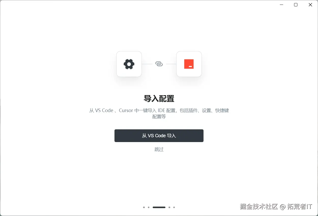 因为trae是基于vs code开发的,完全兼容vscode的插件和配置,由于我想要一个干净的开发环境来进行测试,因此这里选择跳过。等后面验证完开发功能之后再决定是否导入。跳过导入之后继续: