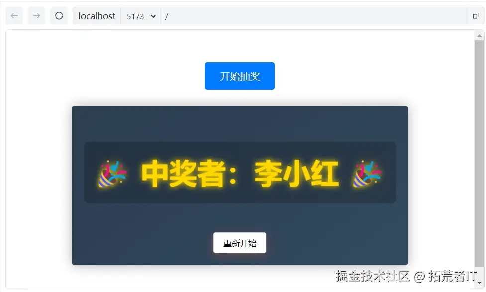项目生成完之后,又通过几个指令对功能进行微调,全程没有输入一行代码,仅告诉trae需要什么,要进行哪些修改,耗时半个小时左右,完成了一个效果还说得过去的抽奖程序: