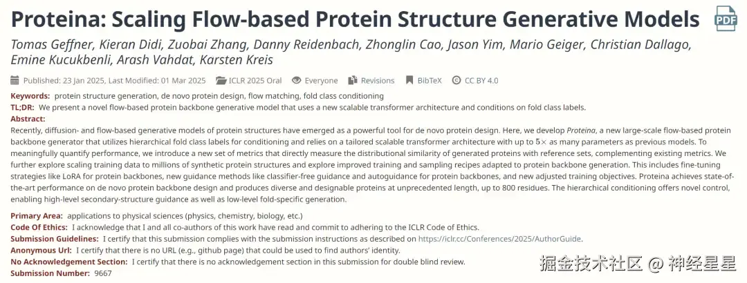 相关研究成果以「Proteina: Scaling Flow-based Protein Structure Generative Models」为题,已入选 ICLR 2025 Oral。