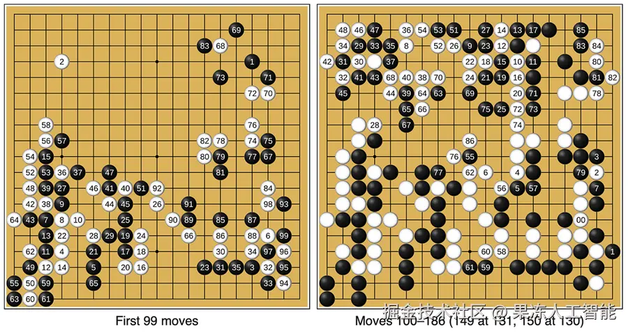 AlphaGo Master(白)对唐韦星(2016年12月31日),AlphaGo执白中盘胜。白36这一手,获得广泛好评(来源)。