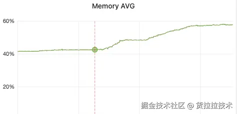 重新调整缓存模块的逻辑,推到线上验证。从监控上来看,内存使用量比较稳定,而非先前的一直在增长的趋势。