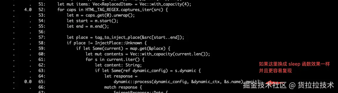 尝试对我们的业务代码进行合理的删减。几番测试下来,只要不将regex.captures_iter 与 await 语句混用就避免了内存的异常增长。