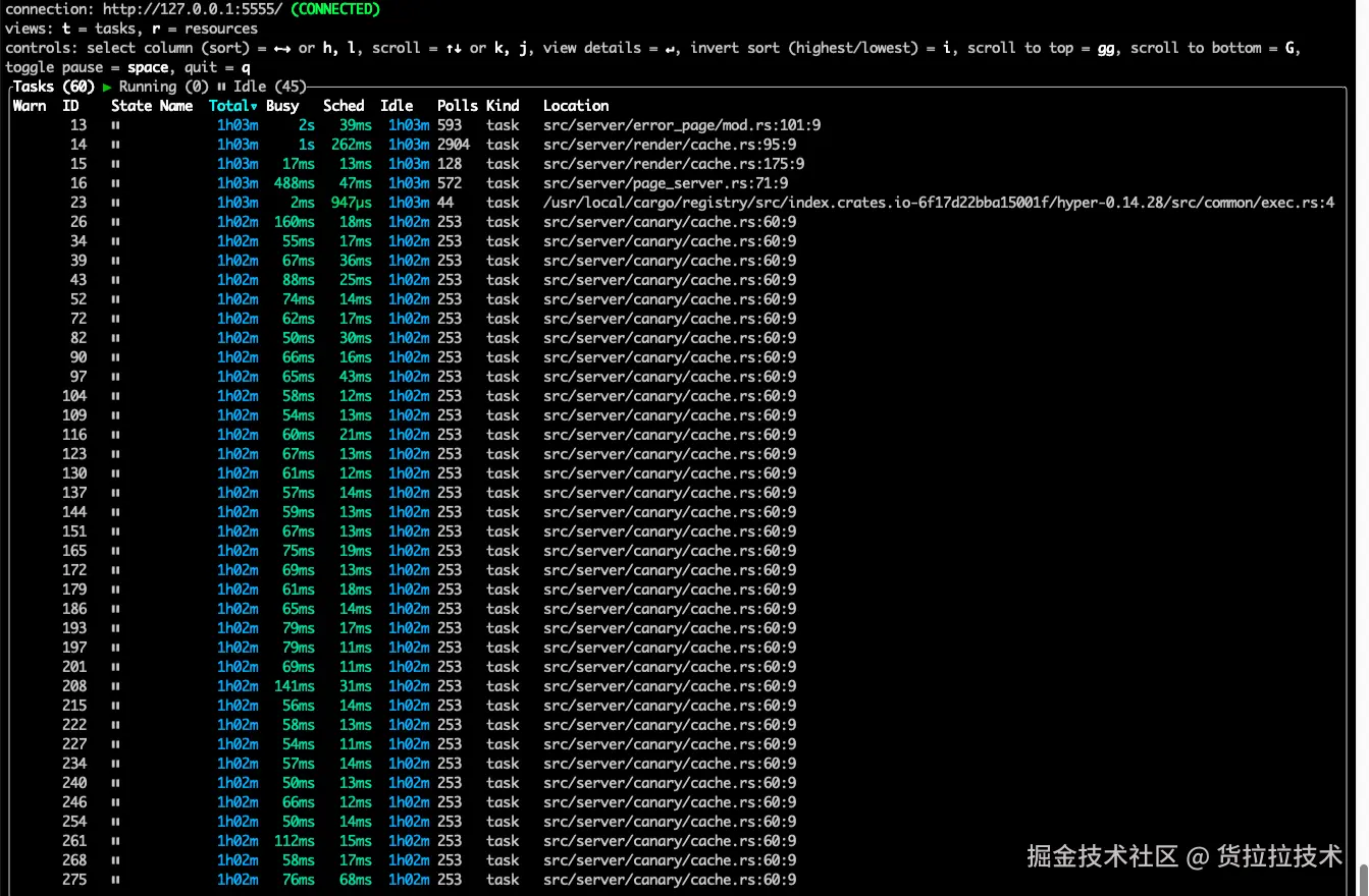tokio-console http://127.0.0.1:5555