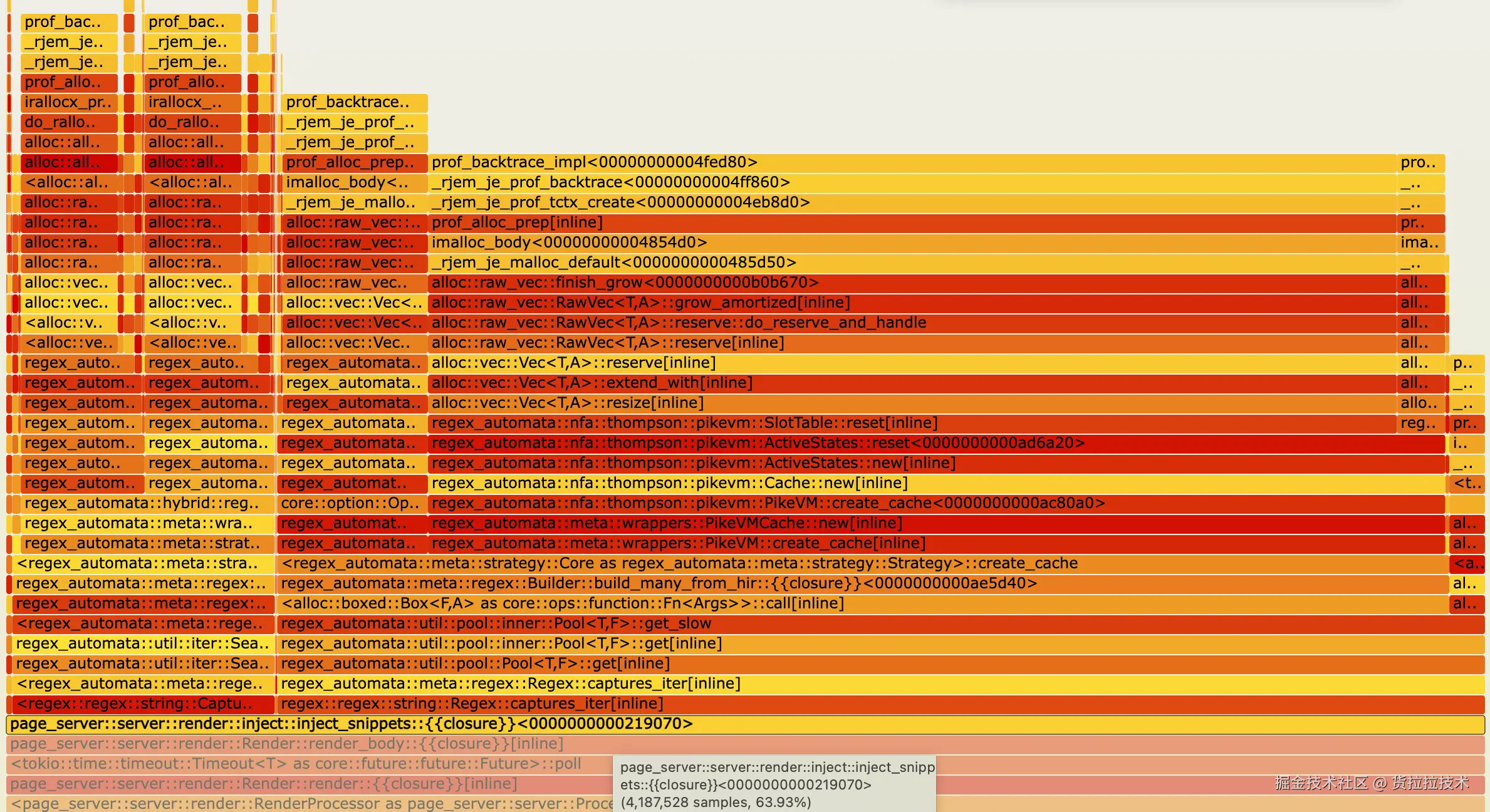 到这里就可以怀疑额外的内存增长来自于正则对象。生成的火焰图中也可以印证我们的判断。