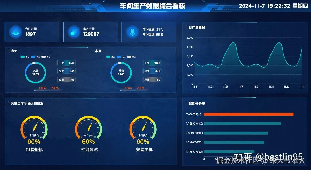 - 亮点:数据实时更新,多种图表展示,帮助生产管理人员高效管理。