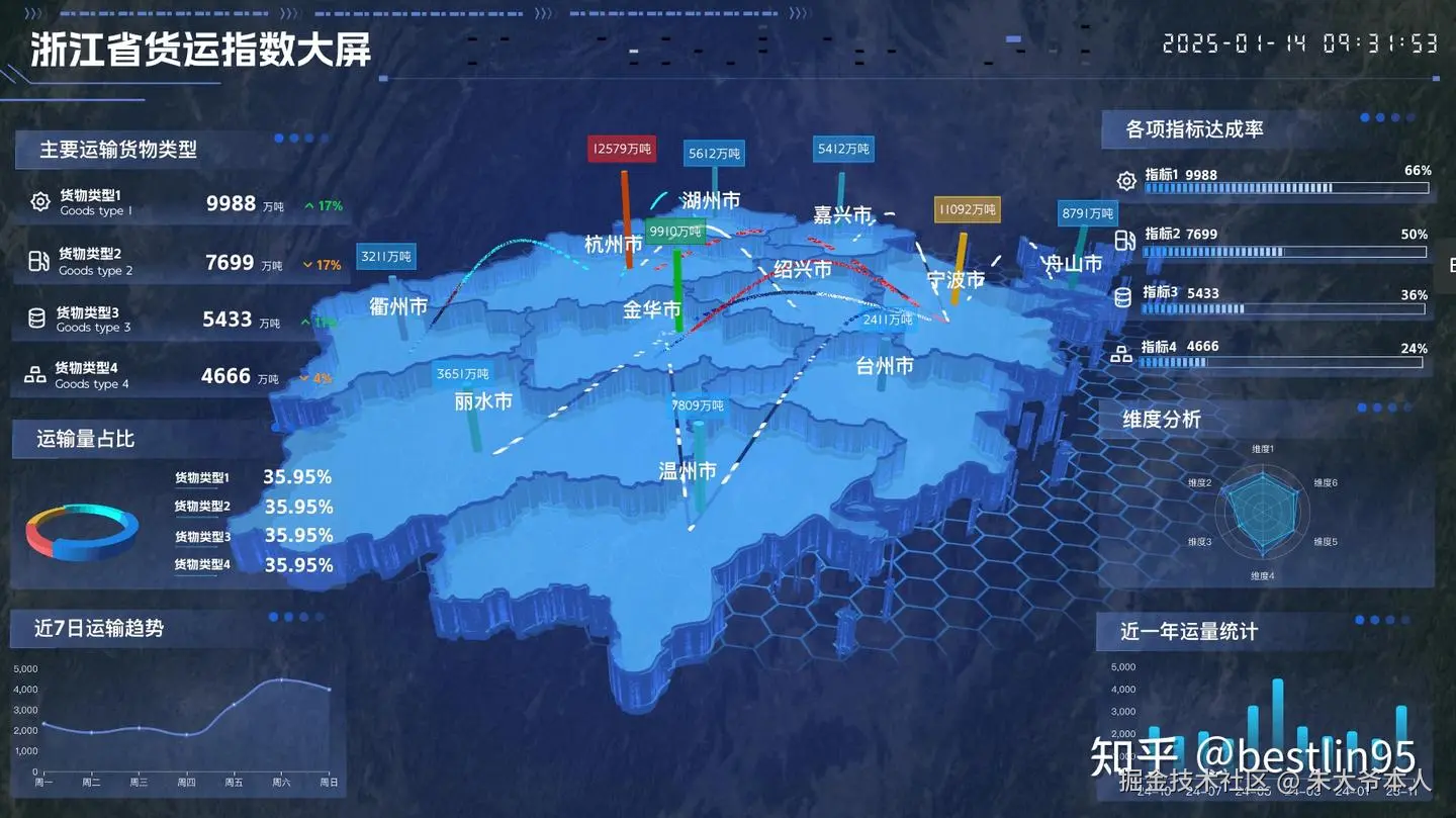 - 应用场景:适用于物流行业,展示货物运输轨迹、物流状态、配送效率等。