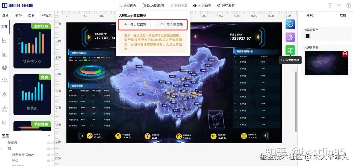 以上大屏模板均可通过DataShow可视化编辑器