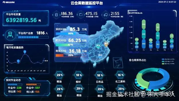 - 应用场景:适用于仓储物流,展示仓库库存、货物出入库、物流状态等。