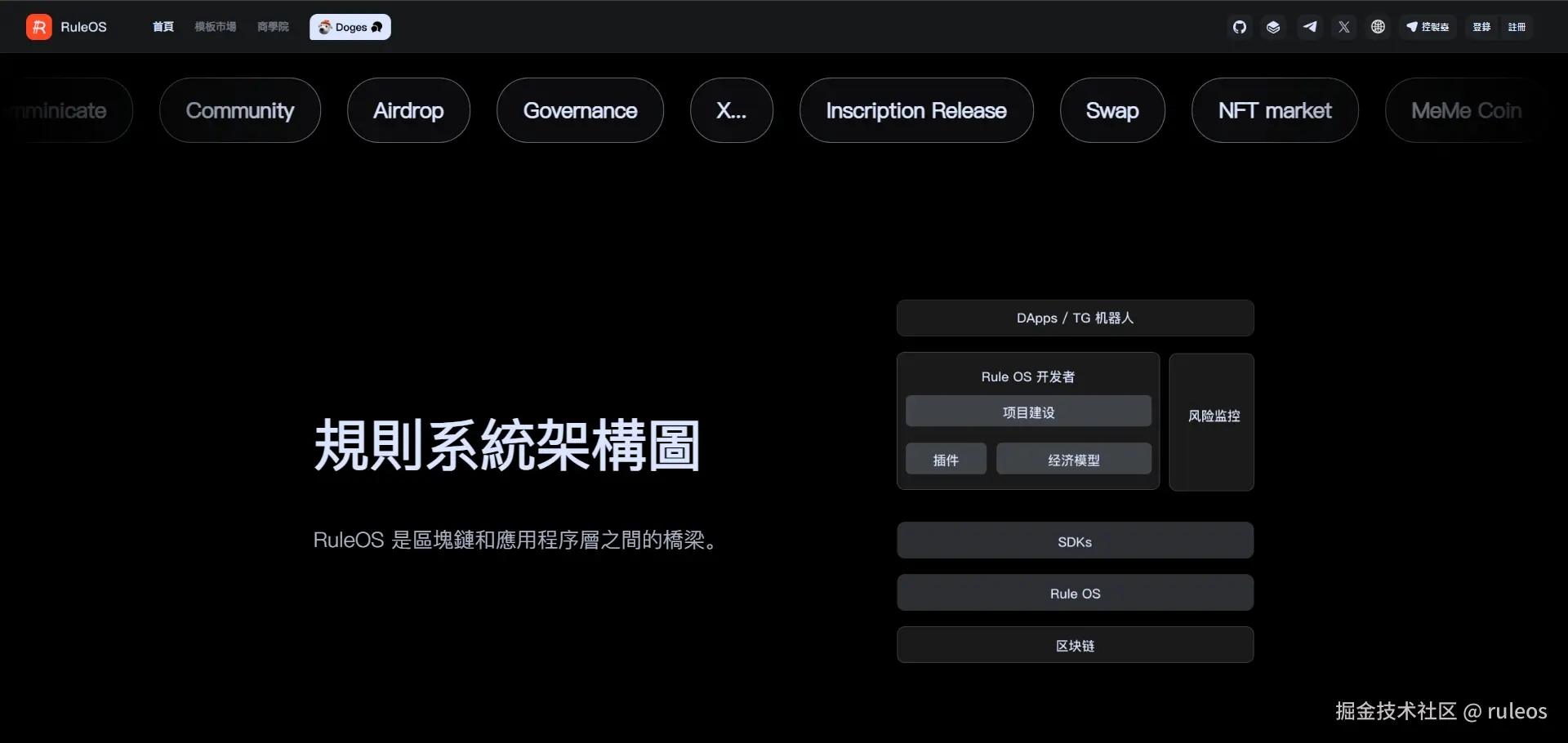 - 提供通用功能组件:在 RuleOS 运营桌面上,为每个 Web3 项目提供了通用的治理、经济、业务、交流沟通、数据分析等功能组件。项目方可以根据自身需求,灵活组合这些组件,打造出具有特色的 Web3 应用,避免了功能的同质化竞争,让项目更具差异化优势。比如,一个专注于游戏领域的 Web3 项目,可以利用 RuleOS 提供的治理组件,设计独特的游戏内经济治理机制;利用交流沟通组件,搭建玩家社区,增强玩家之间的互动,从而与其他普通游戏项目区分开来。