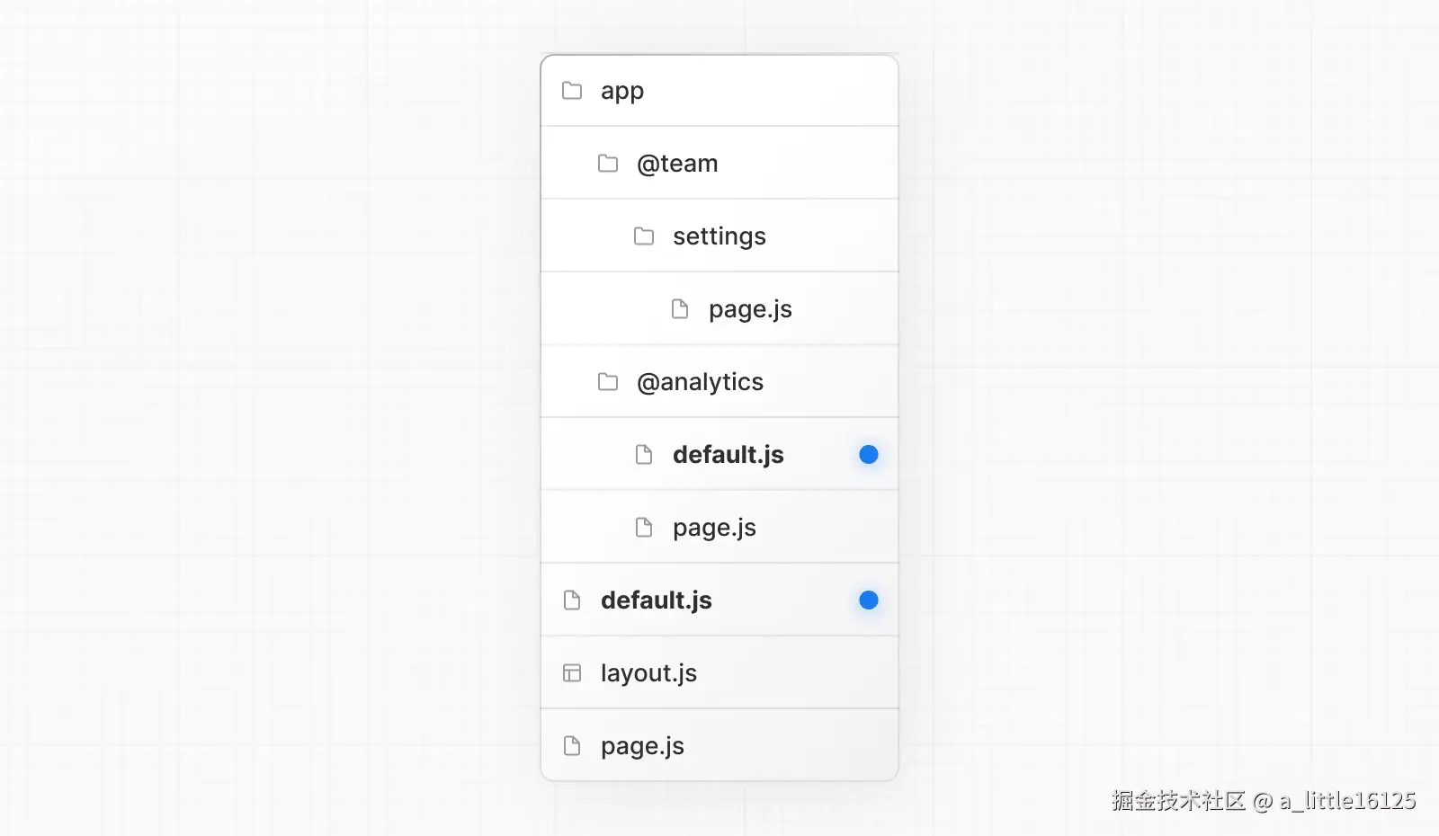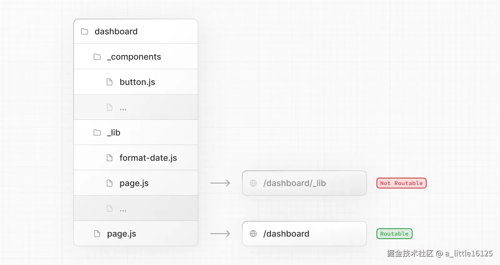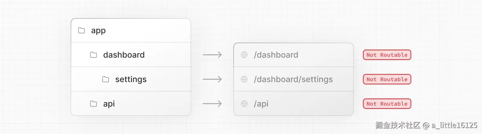 在此示例中,/dashboard/analytics URL 路径不可公开访问,因为它没有相应的 page.js 文件。该文件夹可用于存储组件、样式表、图像或其他并置文件。