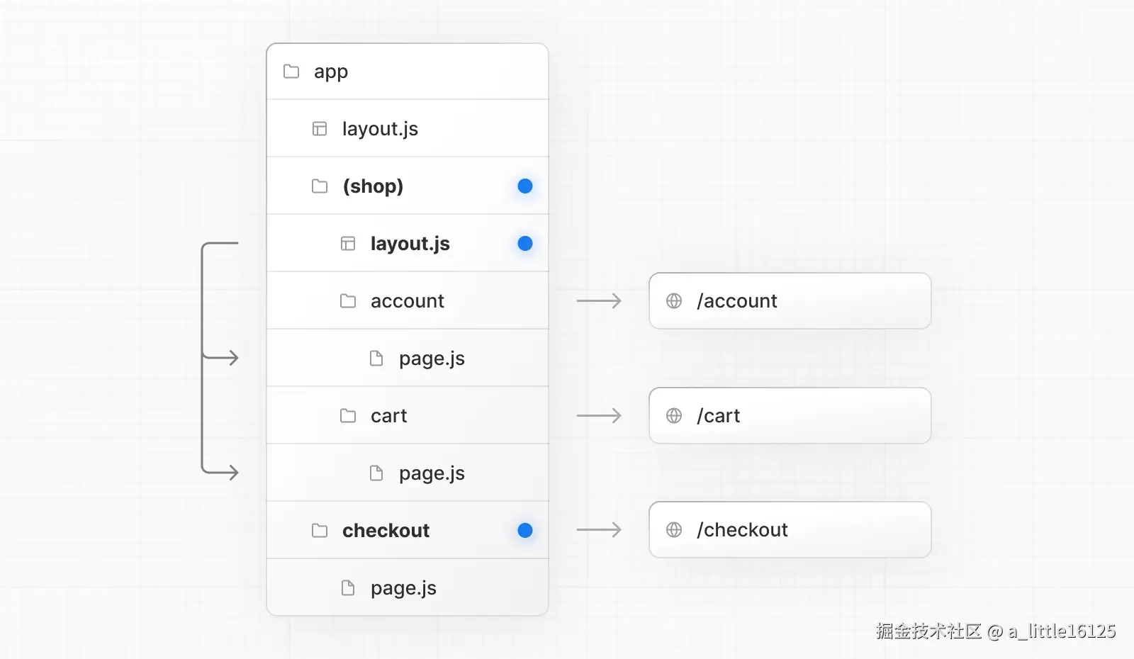 useSelectedLayoutSegment或useSelectedLayoutSegments。 - 你可以使用 route groups来制定共享的路由