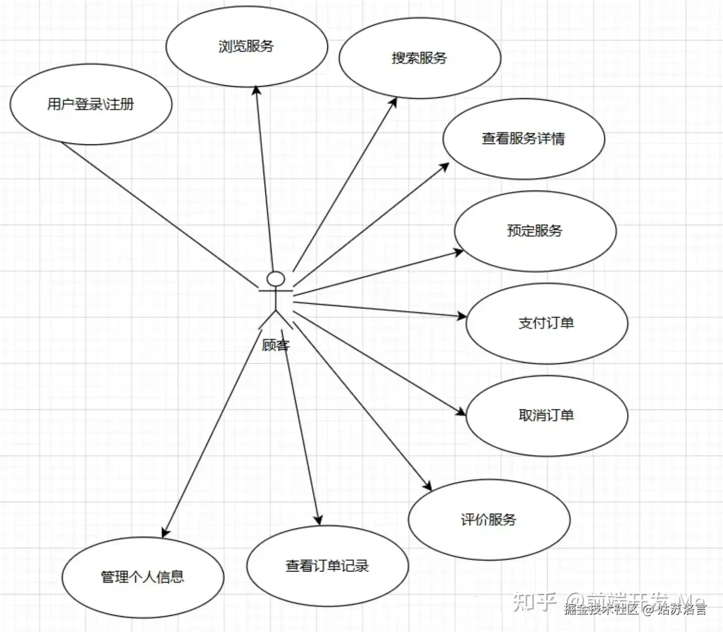 在和客户进行需求沟通的时候,除了使用常规的问答的形式,我还使用图形化工具更深入的沟通。比如借助UML的用例图来开展系统分析,并且按照角色详细拆解了家政预约小程序的各个用例。在分析阶段思考的越多,沟通的越多,在系统开发阶段需要修改的就越少。