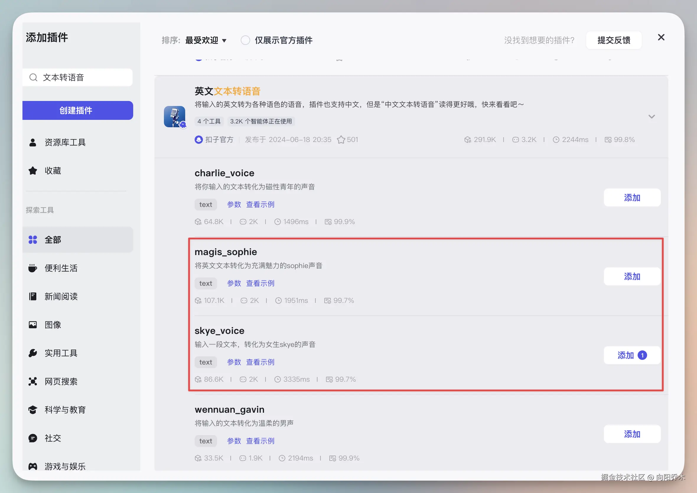 选个喜欢的声音添加进去。