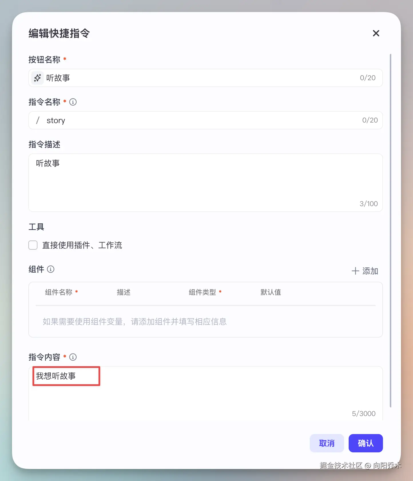 指令内容很简单,为了模拟用户打字内容,调起工作流。