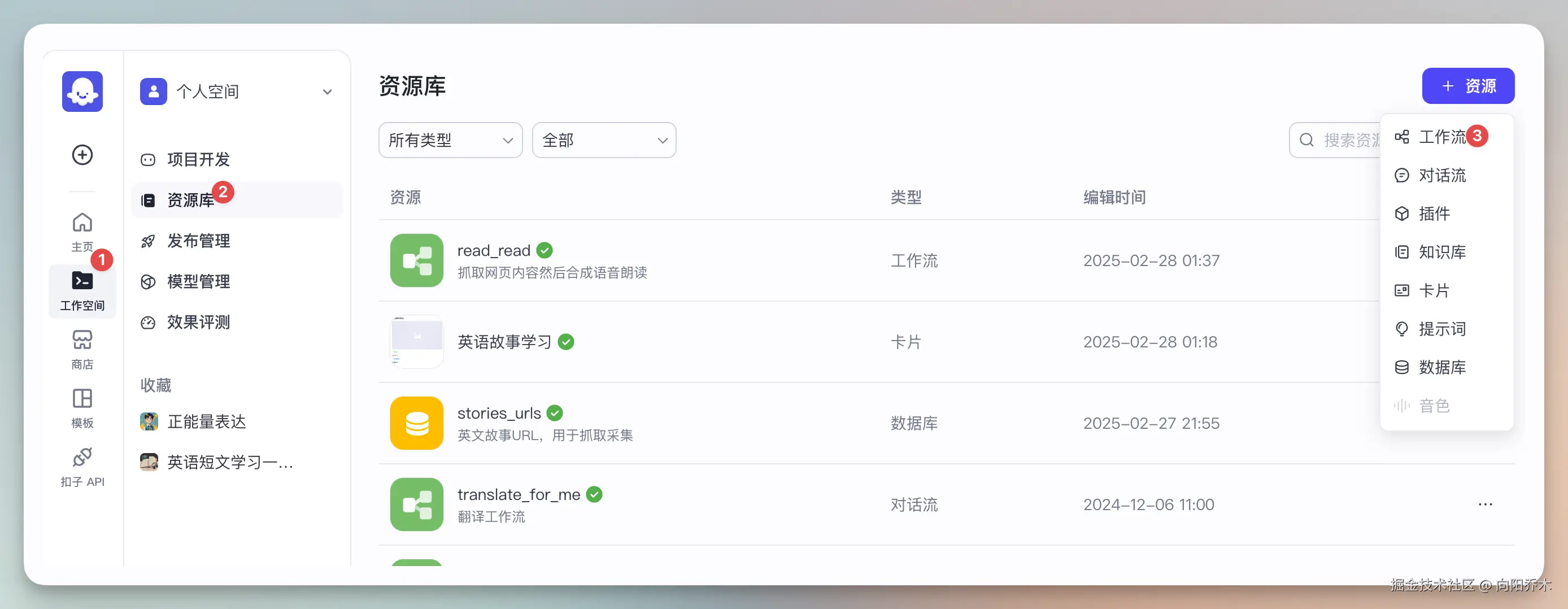 首页 -> 工作空间 -> 资源库 -> 创建工作流
