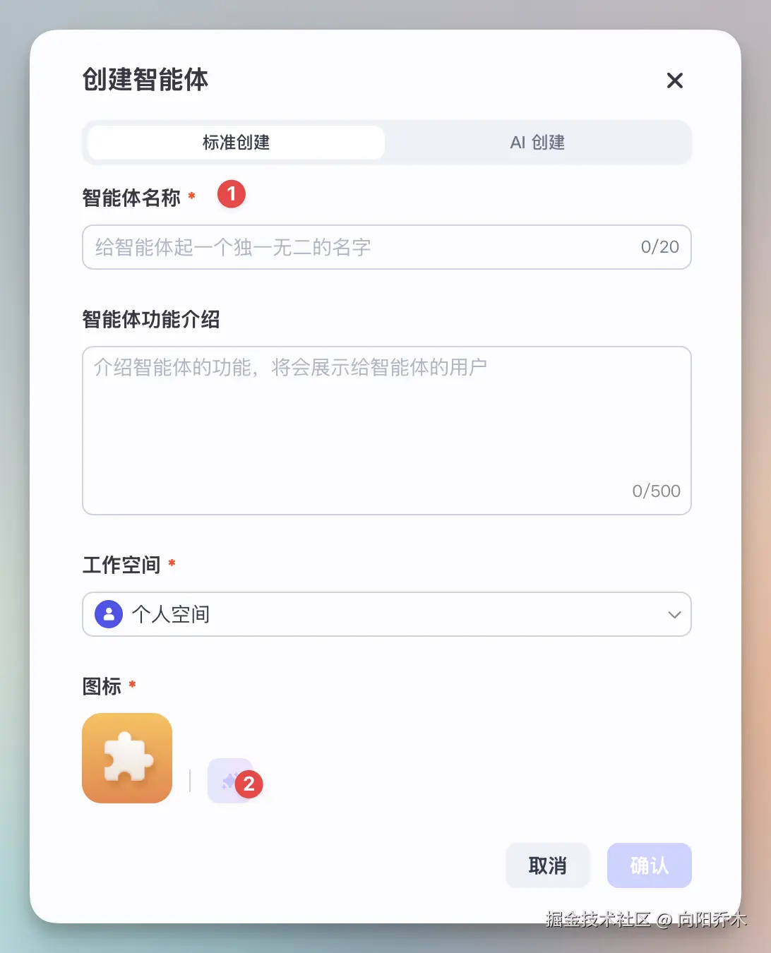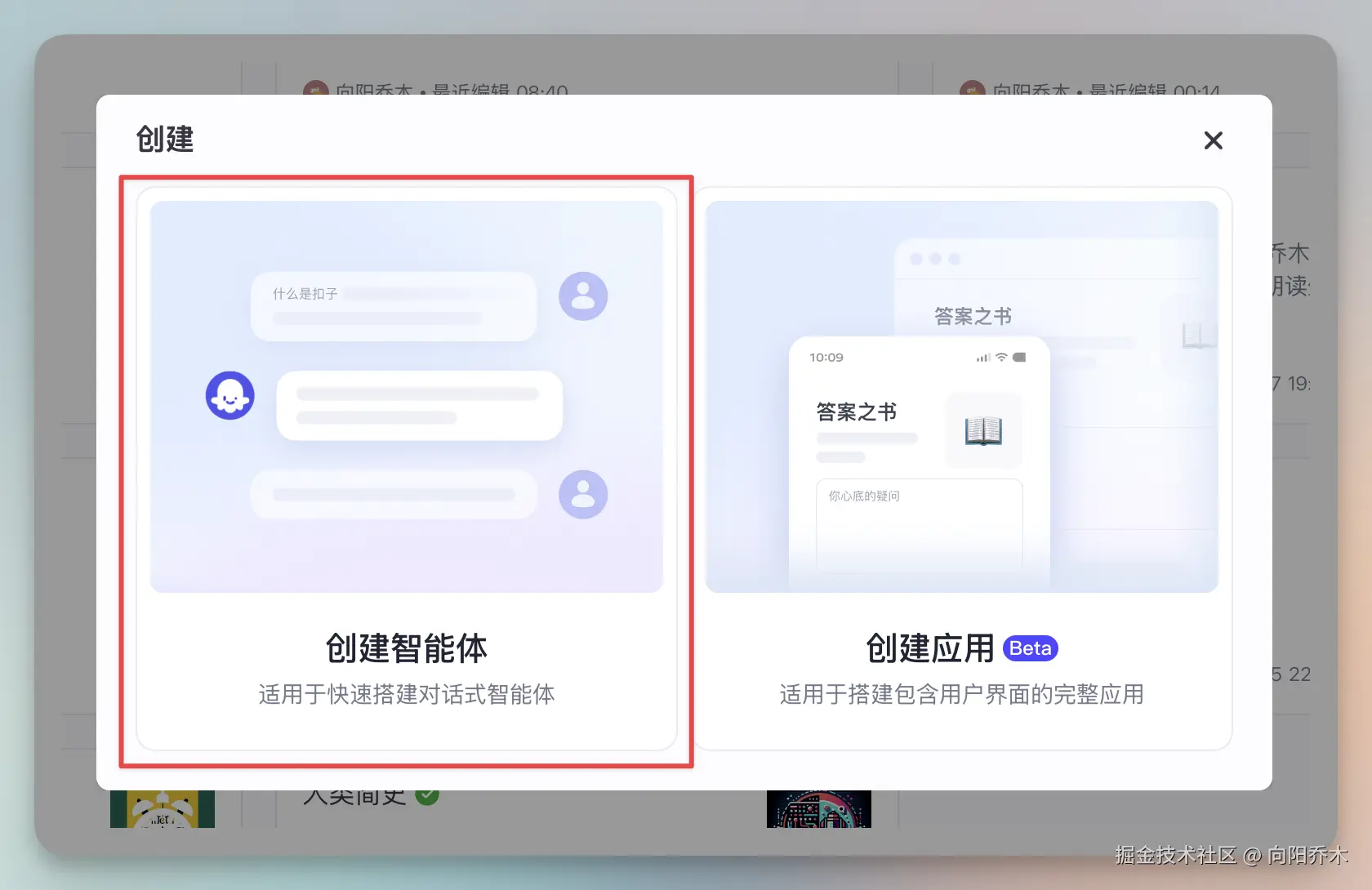 - 选创建智能体