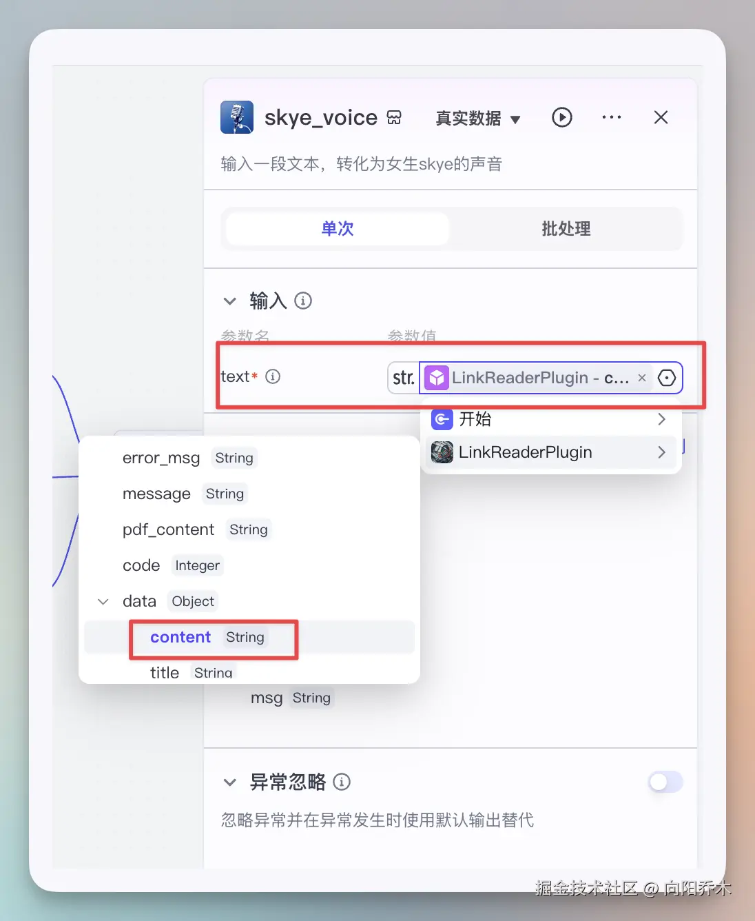 点开配置,把上一步插件的content作为text输入。