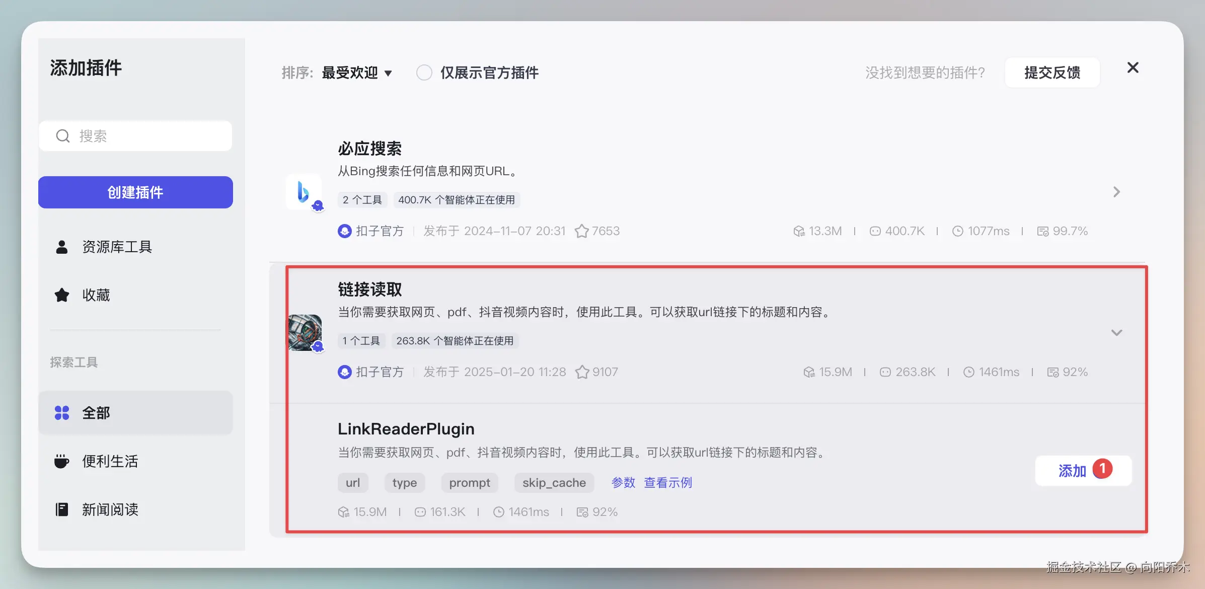 点“添加节点”->"插件”,添加一个链接读取插件