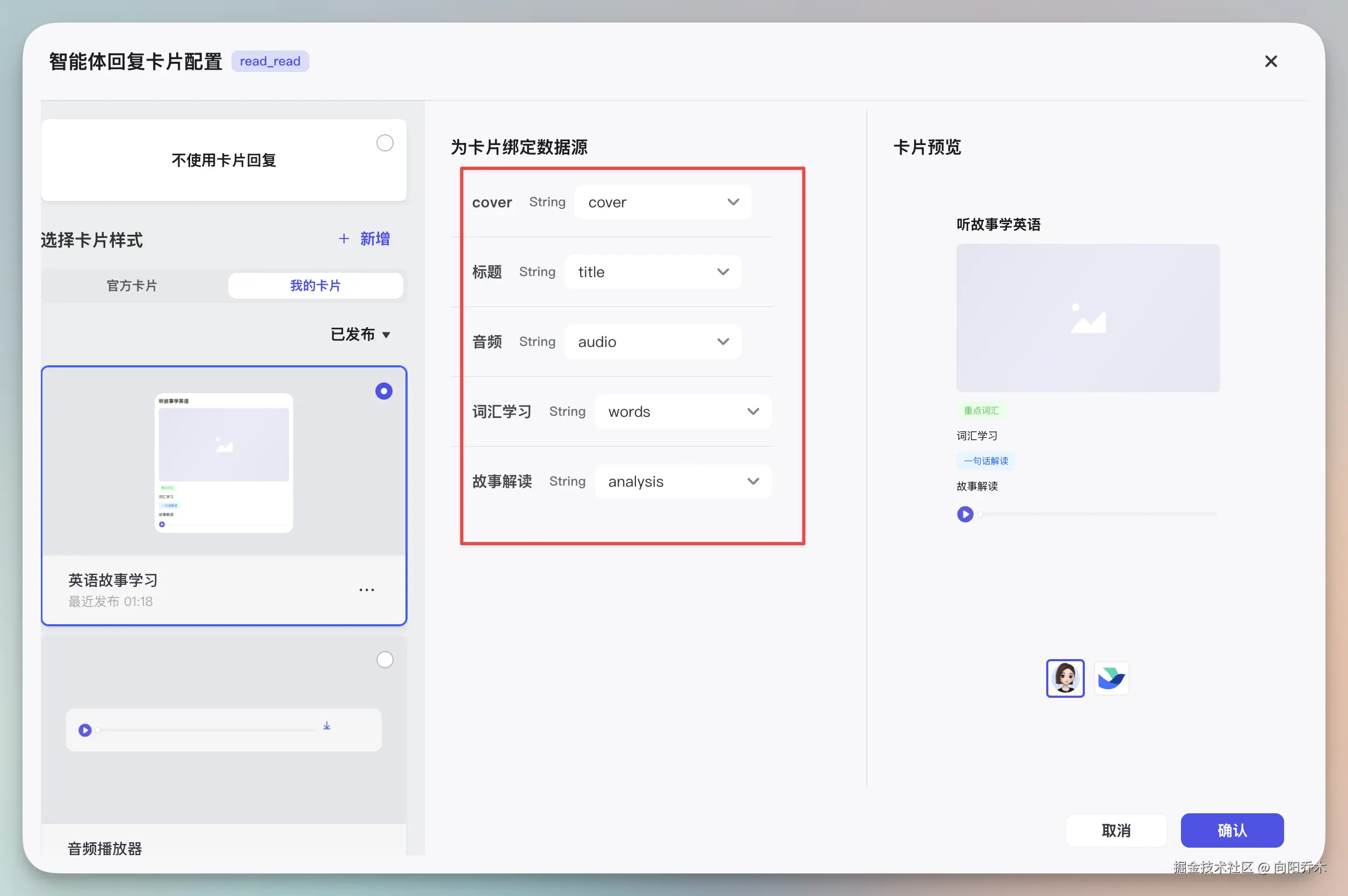 卡片制作发布后,如何绑定智能体和工作流呢?