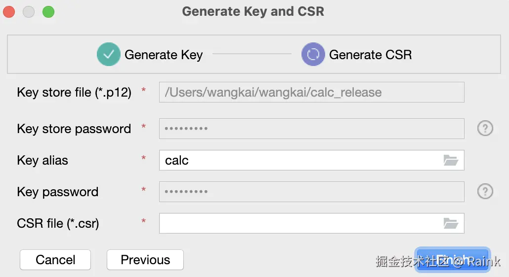 - 证书请求文件:格式为.csr,全称为Certificate Signing Request,包含密钥对中的公钥和公共名称、组织名称、组织单位等信息,用于向AppGallery Connect申请数字证书。