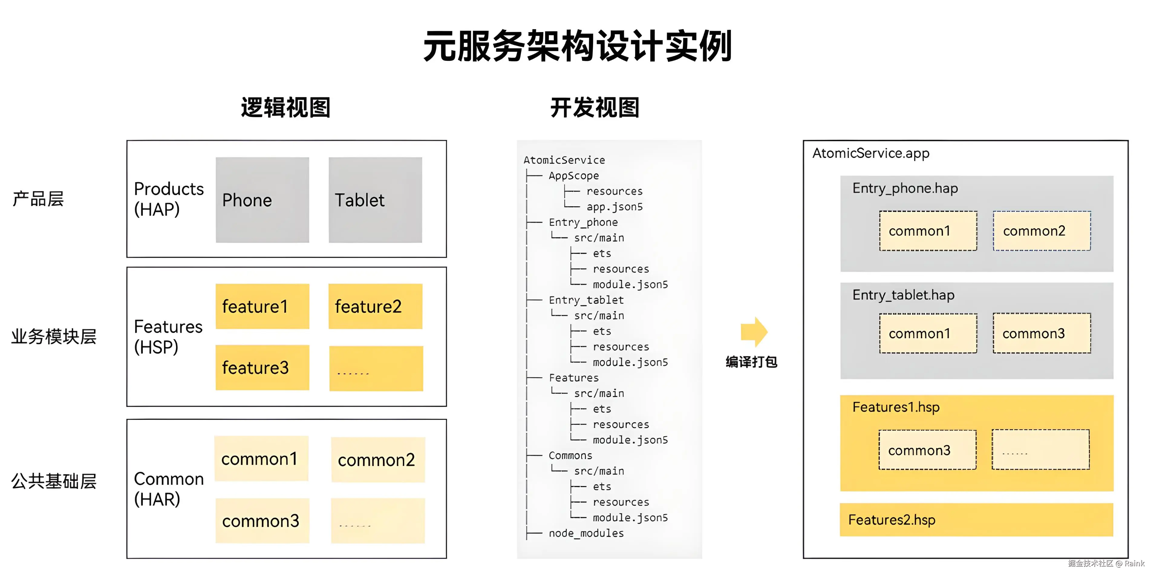 可被产品定制层不同设备形态的 HAP 依赖,但不能反向依赖产品层,可向下依赖公共基础层。该层将通用业务逻辑进行封装,提升代码复用性,比如订单处理、用户信息管理等模块,在不同设备形态的元服务中都能调用。