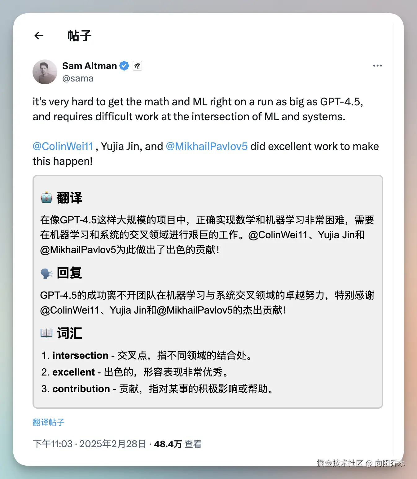 翻译服务选任意免费 LLM 翻译,或自己配置模型 API,或直接开 VIP,效果如下: