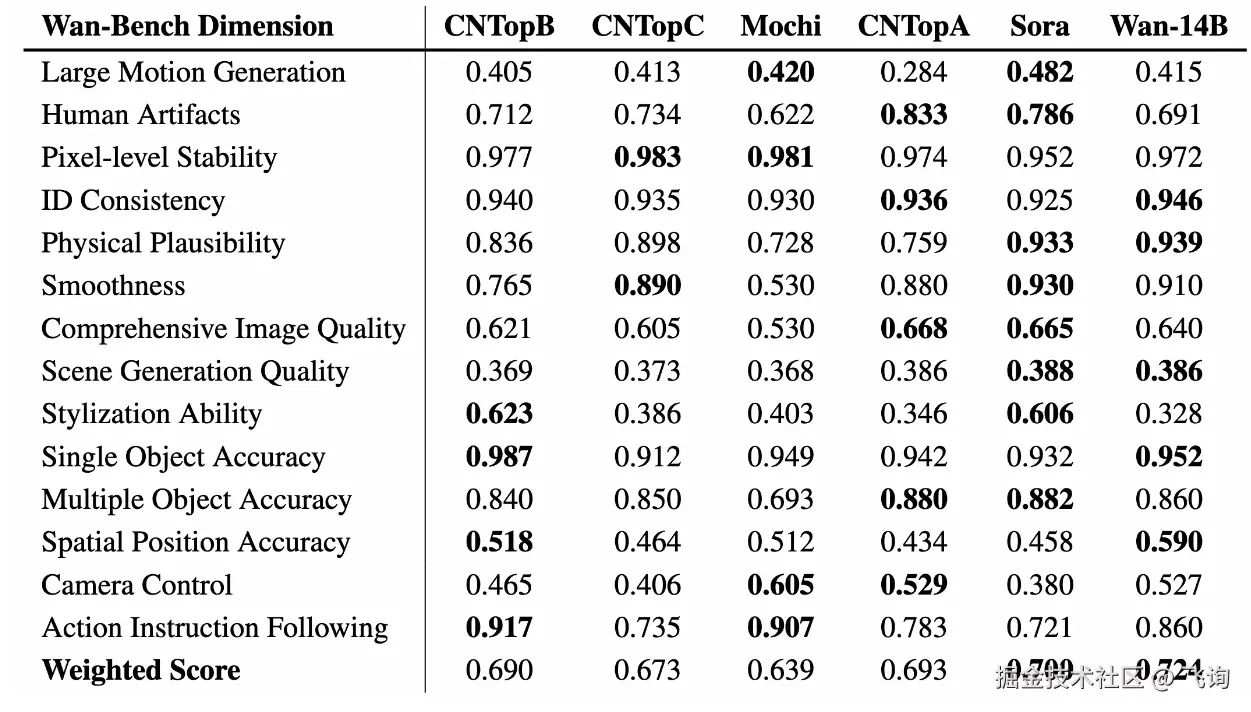 这些结果表明,与开源和闭源模型相比,Wan2.1 模型具有卓越的性能。