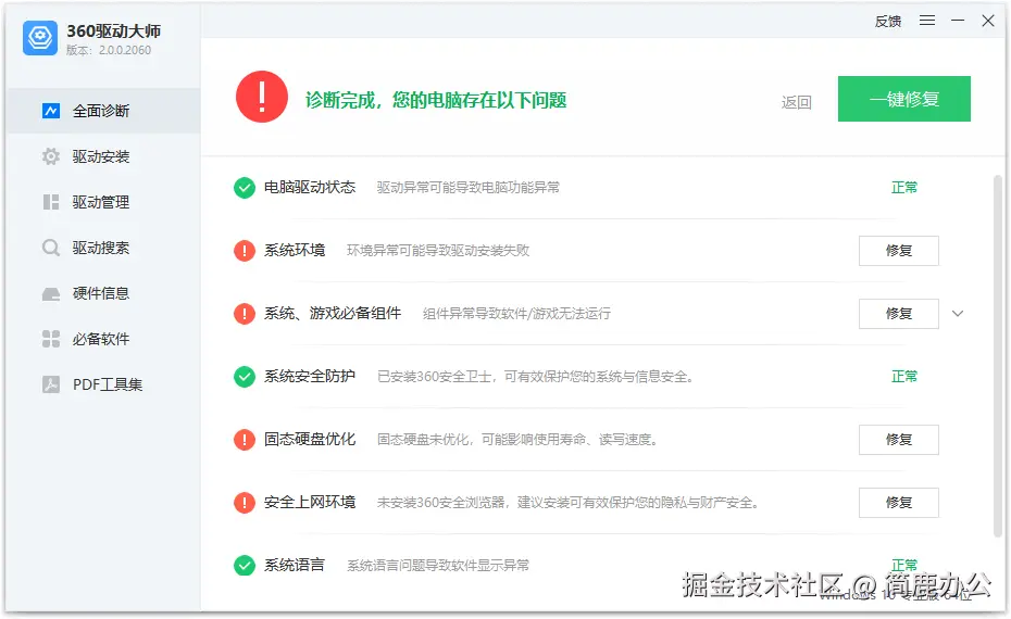 电脑驱动程序是操作系统与硬件设备之间的桥梁,如果驱动出现问题,可能会导致设备无法正常工作或系统不稳定。本文中简鹿办公将介绍一些常见的驱动问题原因,并详细讲解如何使用360驱动大师在线更新和安装驱动来解决这些问题。