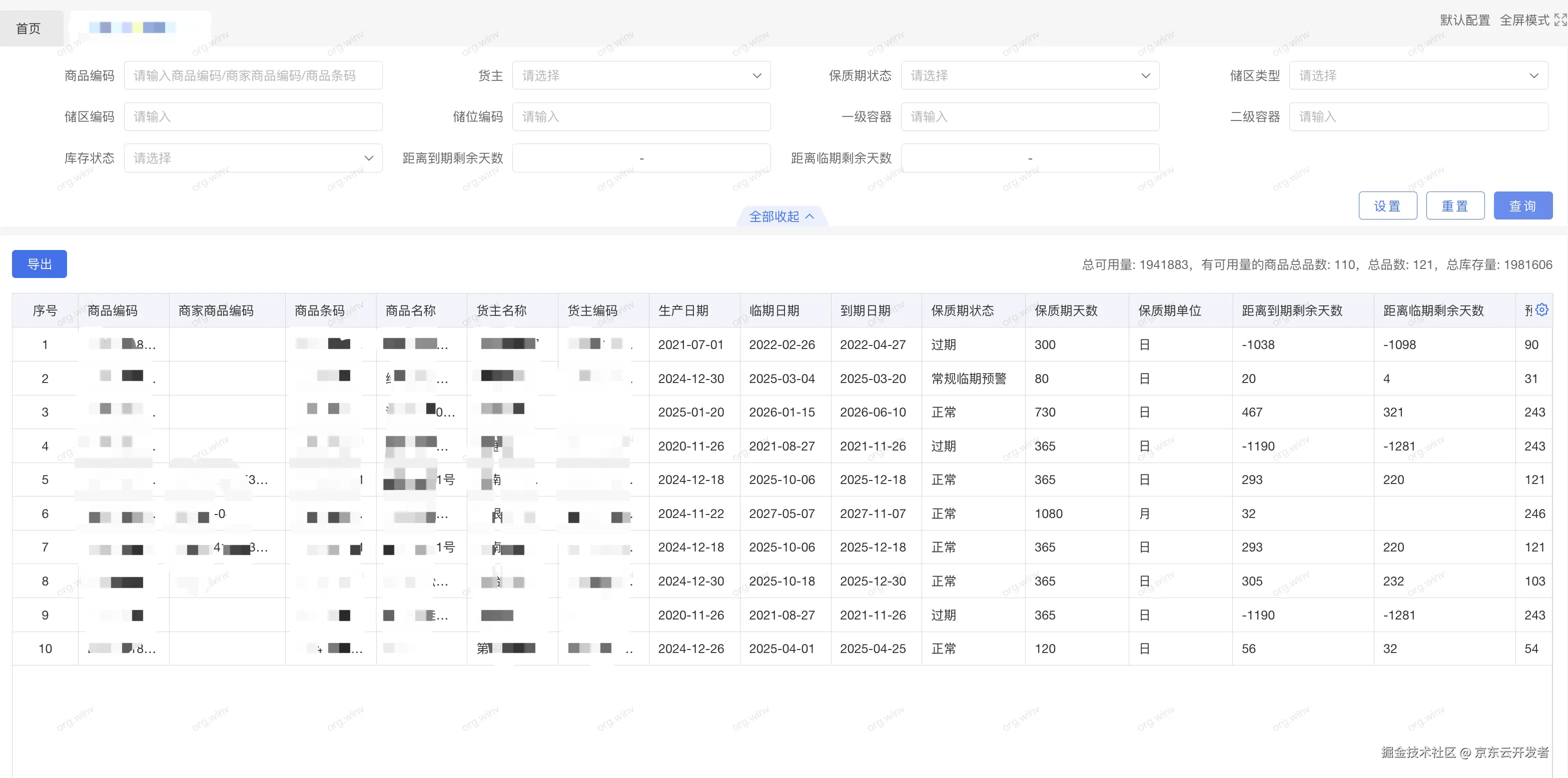 ==> Preparing: SELECT m.id, m.sku, m.location_no locationNo, m.container_level_1 containerLevel1, m.container_level_2 containerLevel2, m.lot_no lotNo, m.sku_level skuLevel, m.owner_no ownerNo, m.pack_code packCode, m.stock_qty stockQty, m.prepicked_qty prePickedQty, m.premoved_qty preMovedQty, m.frozen_qty frozenQty, m.diff_qty diffQty, m.broken_qty brokenQty, m.status, m.create_time as createTime, m.update_time as updateTime, m.update_user as updateUser, m.create_user as createUser, stock_qty - (prepicked_qty + premoved_qty + frozen_qty + diff_qty + broken_qty) availableQty, (prepicked_qty + premoved_qty + frozen_qty + diff_qty + broken_qty) noAvailableQty, m.zone_no zoneNo, m.zone_type zoneType, slsl.shelf_life_status shelfLifeStatus, slsl.left_days leftDays, slsl.production_date productionDate, slsl.expiration_date expirationDate, slsl.shelf_life_days shelfLifeDays, slsl.warning_days warningDays, slsl.regular_advent_days regularAdventDays, slsl.urgent_advent_days urgentAdventDays, slsl.advent_days adventDays, slsl.extend_content extendContent FROM st_stock m INNER JOIN st_lot_shelf_life slsl ON m.tenant_code = slsl.tenant_code AND m.sku = slsl.sku AND m.lot_no = slsl.lot_no AND slsl.deleted = 0 WHERE m.deleted = 0 AND m.stock_qty > 0 AND m.warehouse_no = ? AND m.lot_no != '-1' LIMIT ? /* [SQLMarking] statementId: com.jdwl.wms.stock.infrastructure.jdbc.report.dao.StockShelfLifeReportDao.selectStockShelfLifeReport, pFinderId: 4630283.56667.17392048399060130, operator: guozhongqiang5, traceId: 59f48d4d-5346-4ffe-9837-693a090090fc */