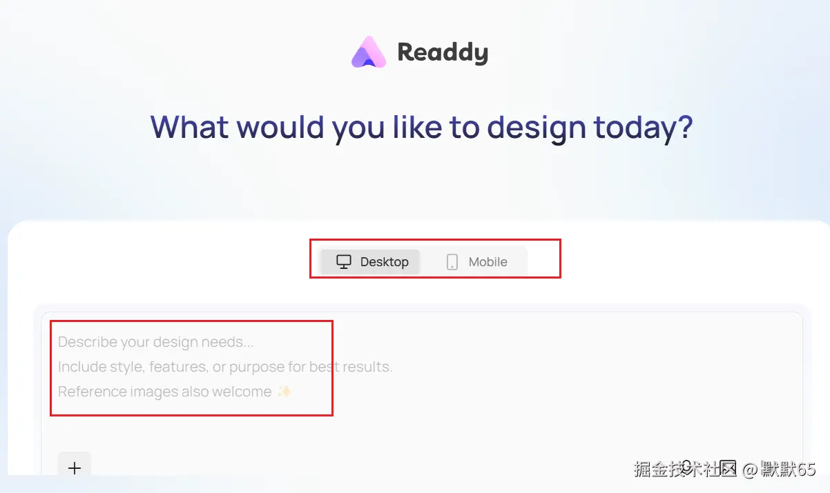 Readdy.ai 提供 AI 设计助手,你只需要输入简单的描述,比如: