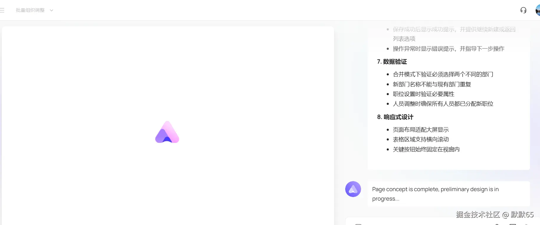 这次他帮我生成了合并拆分转移三个场景,二级页面也调整的基本符合预期