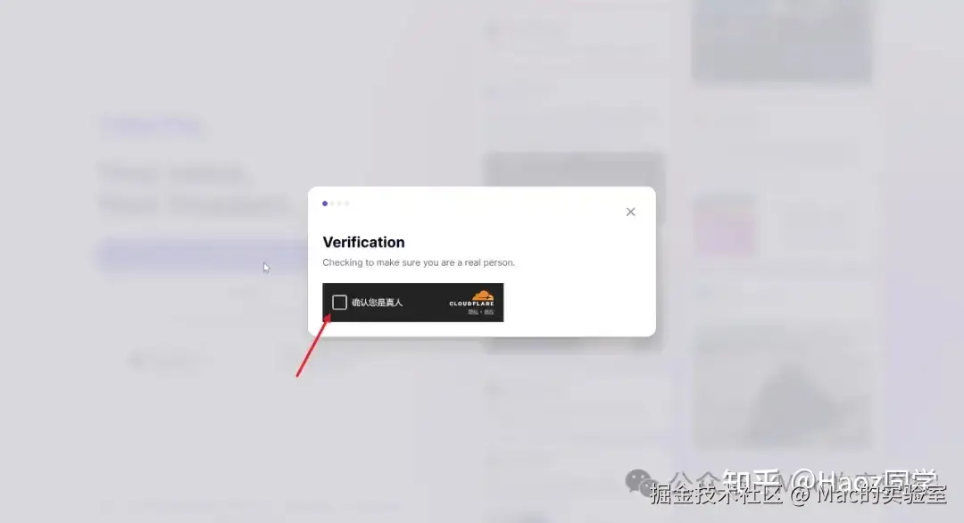 - 完成机器验证 注册页面会弹出一个机器验证框,您只需点击确认框款以证明您是真人即可。