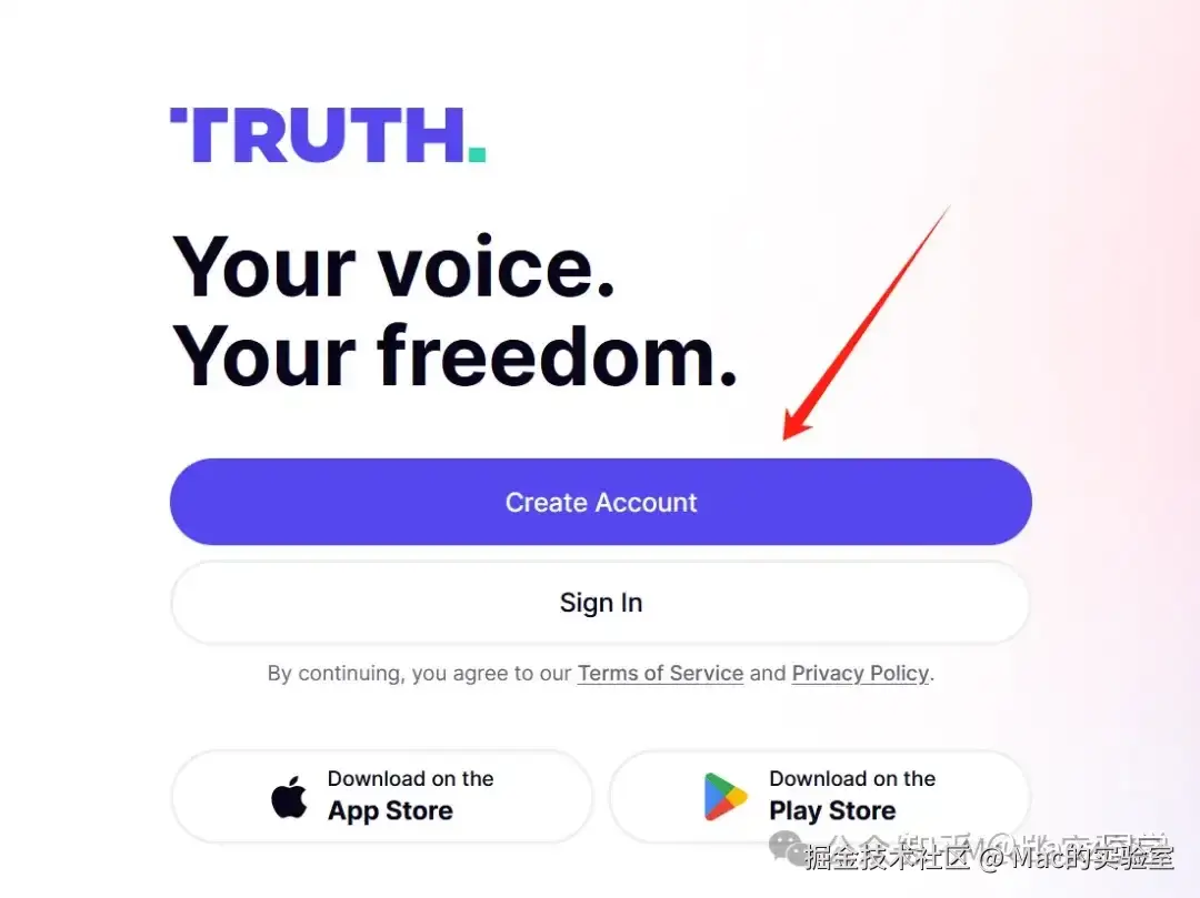 - 打开浏览器,输入Truth Social官网地址,点击“Create Account”按钮开始注册。