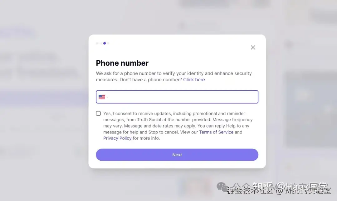 如果遇到困难,可以尝试使用国外手机号或虚拟号码服务(需确保服务支持Truth Social的短信验证)。因为有些VOIP号码它是不支持验证的,觉得麻烦不想折腾的同学可以在公众号:Mac的实验室 后台回复 懂王 获取即可